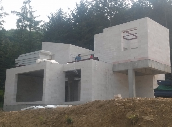 외벽300T,내벽200T,RC골조와 철골조 일부ALC판넬 복합구조입니다.